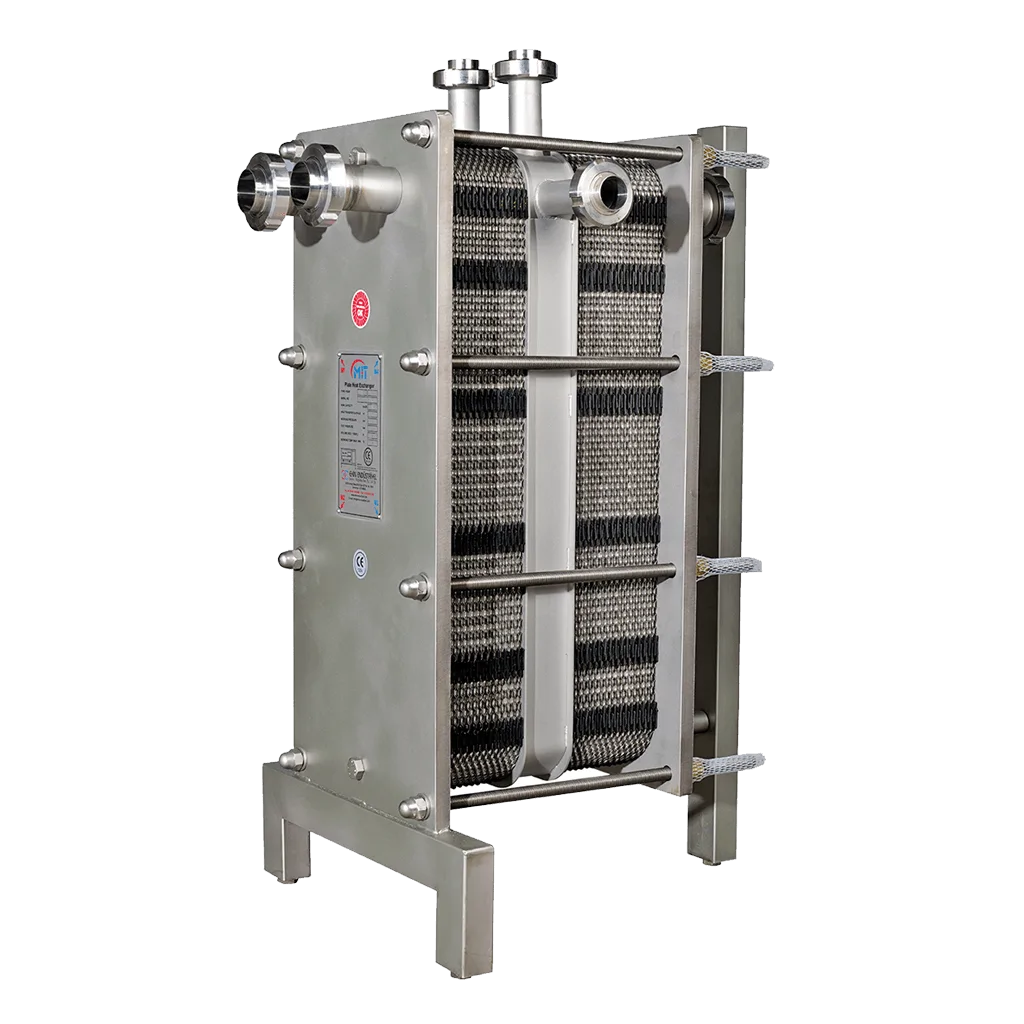 Пластинчатые теплообменники из нержавеющей стали Пластинчатые теплообменники из нержавеющей стали — это теплообменники, используемые в пищевой промышленности и предотвращающие проблемы, такие как размножение бактерий. В отличие от обычных пластинчатых теплообменников, пластинчатые теплообменники из нержавеющей стали обеспечивают передачу тепла в гигиеническом виде, что делает их популярным выбором в области пищевой промышленности. Системы, в которых эти теплообменники чаще всего используются в пищевой промышленности, — процессы нагрева и охлаждения молока.