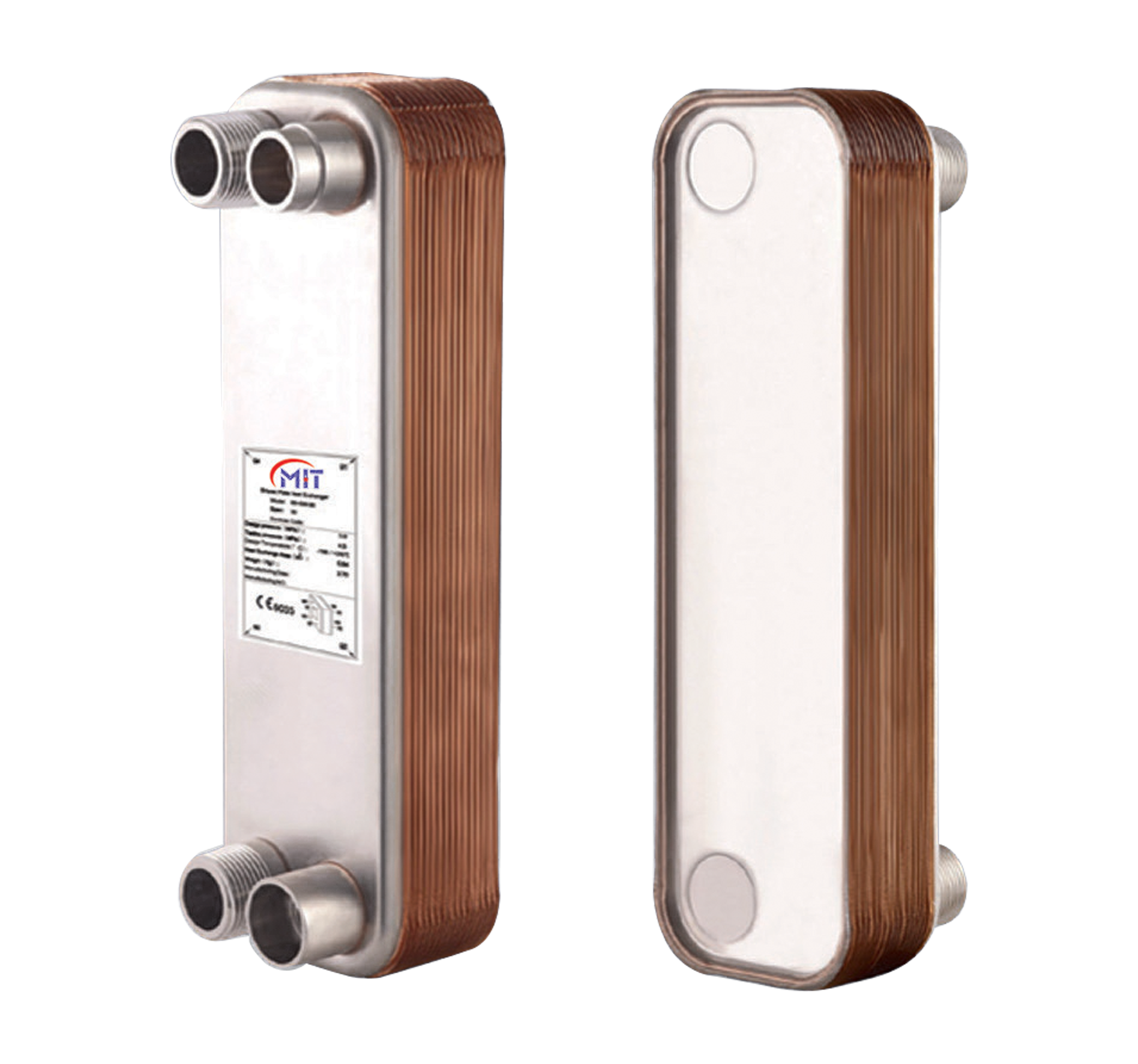 Эти обменники производятся путем соединения серии металлических пластин с использованием специального паяльного материала при высокой температуре. Паяльный процесс обеспечивает герметичное соединение между пластинами, что обеспечивает целостную и прочную конструкцию теплообменника. В приложениях, где герметичность важна и/или имеются очень высокие температуры, вместо классических прокладочных теплообменников используются теплообменники MIT с Паяным соединением. Паяные теплообменники используются в охладительных установках как испаритель и конденсатор, а также в тепловых приложениях как мгновенный нагреватель.